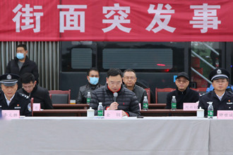 当天下午15时00分,街面突发事件应急处置演练正式开始。本次演练共分为五个科目,分别是常规灭火器扑救初期火险演练、新能源公交车充电起火处置演练、公交BRT站厅突发事件的处置演练、公交车遇暴恐事件的应急处置演练和长棍术、擒敌拳、棍盾组合及擒敌术表演。公交车遇暴恐事件的应急处置演练科目将现场气氛推到高潮。演练中,两名“歹徒”随着人群上车后,在车厢持刀劫持乘客,砍伤驾驶员劫车逃逸并在车内纵火,驾驶员在危急关头拼命按下一键破玻器、一键报警装置后。接到报警后,多警种追击歹徒成功解救“人质”、多部门相继赶到阻击现场进行处置。该科目整个演练过程接近实况,有效检验了多警种、多部门、多要素面对反恐防暴、灭火救援的快速反应和协调作战能力,增强了应对街面突发事件的决策指挥、协调组织和临机处置能力。第二现场的公交BRT站厅突发事件的处置演练也扣人心弦,现场模拟公交BRT站厅一进站乘客不佩戴口罩、不亮健康码、携带可疑物品并抓扯推搡安保人员强行冲进闸机口进站,在站厅纵火,站厅安保人员临危不惧,第一时间反应处置灭火并报警,事件得到有效控制。本次应急处置演练过程组织周密、处置严谨,突出了指挥高效、协同配合、快速反应、紧贴实战的特点,达到了预期目标。